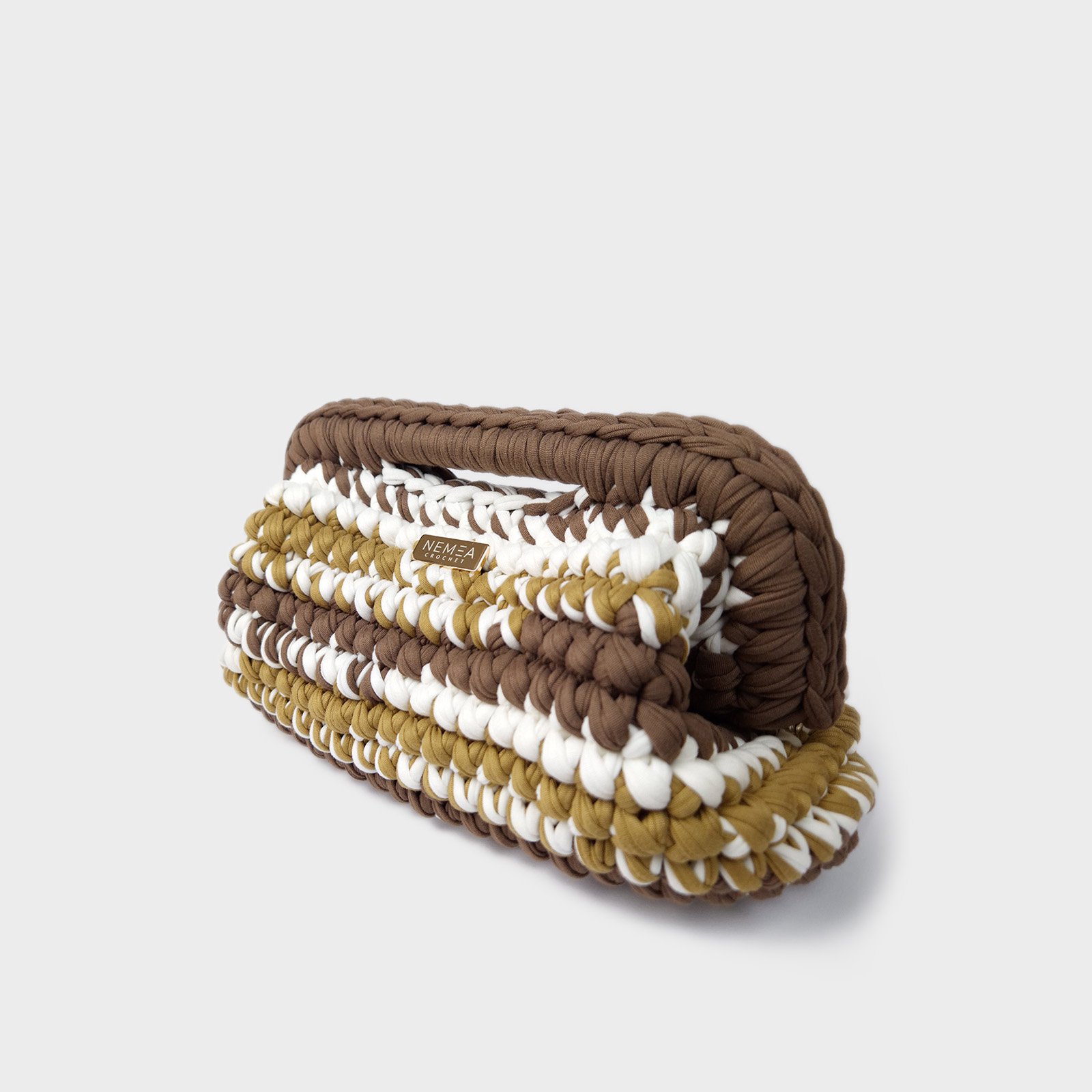CARAMEL STRIPE is a striped crochet clutch designed for everyday and versatile use. This striped crochet clutch features a warm neutral palette combining caramel, cream and cocoa tones, making it easy to pair with both tailored and casual outfits.