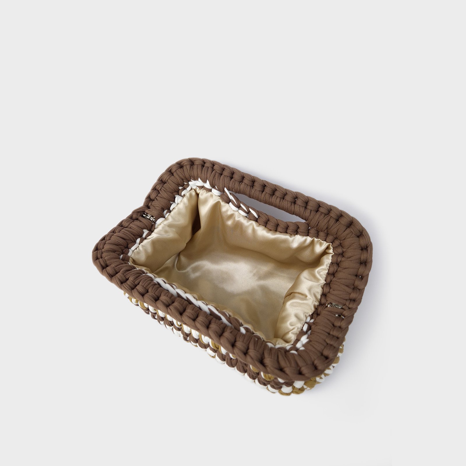 Inside, a champagne satin lining adds a subtle luminous contrast and protects essentials effectively. Designed to elevate daily looks such as blazers, denim or relaxed tailoring, this striped crochet clutch reflects Italian handmade craftsmanship. Each piece is individually made, making this variant one of a kind.