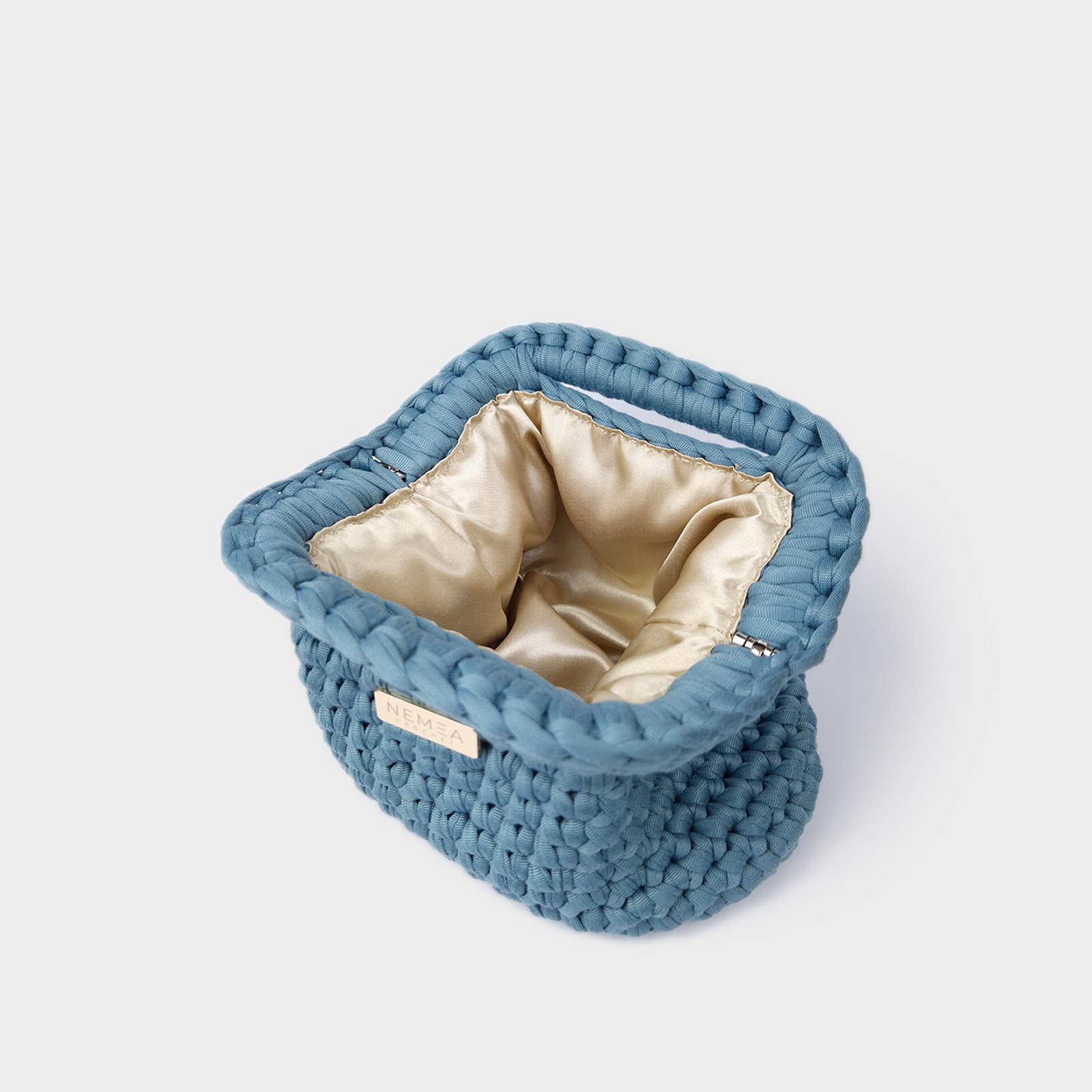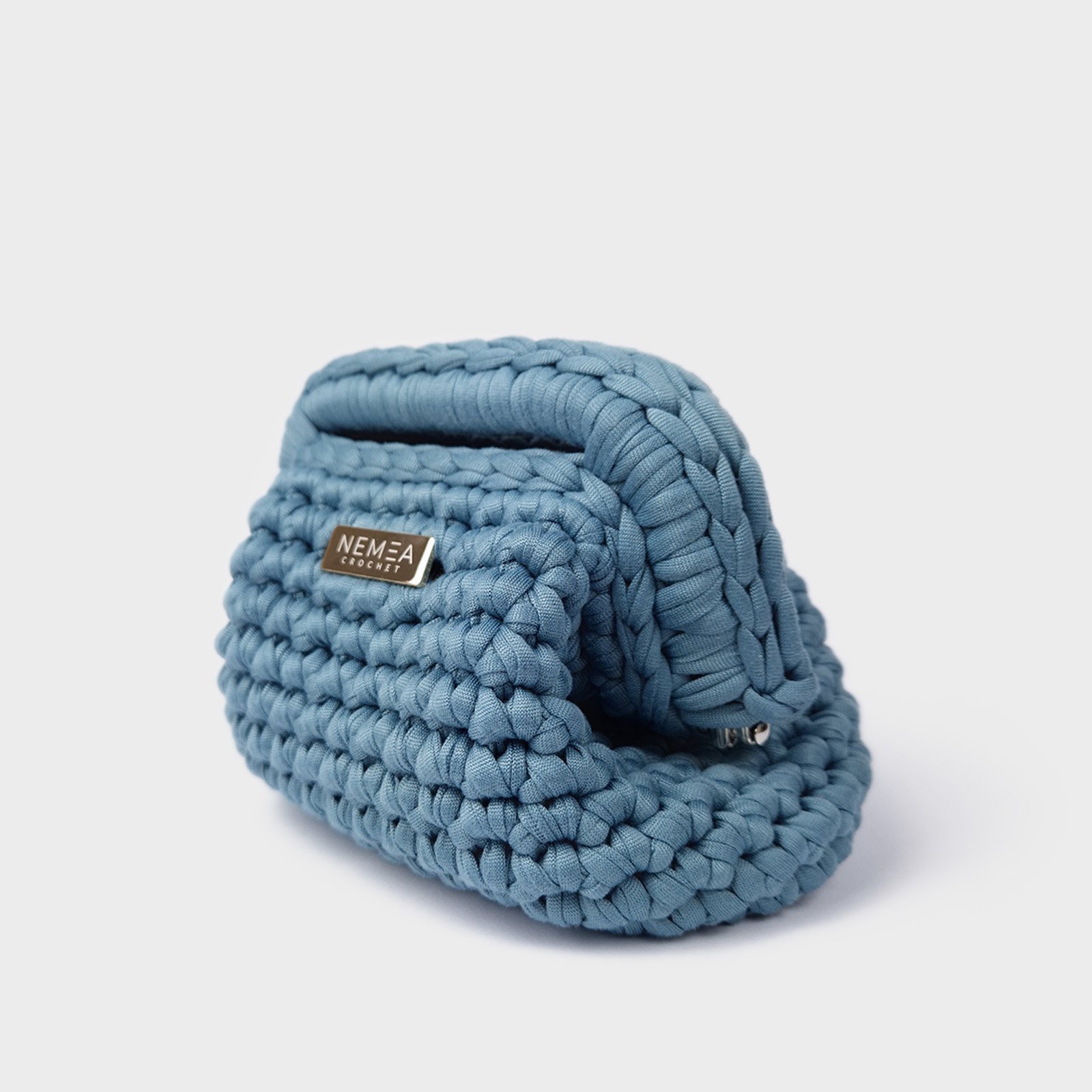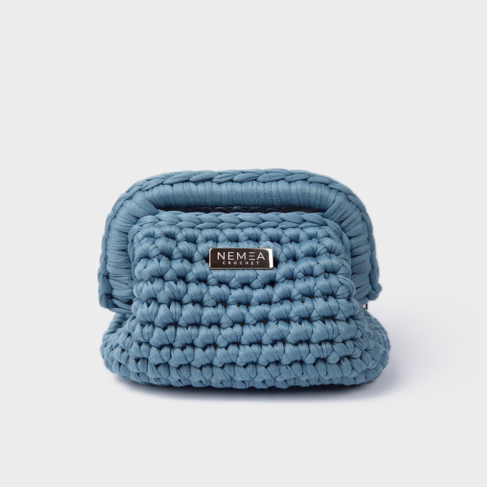 DUSTY SKY is a mini crochet clutch designed in a soft dusty blue tone. This mini crochet clutch features a lightweight yet structured crochet texture, offering comfort and everyday practicality in a compact format.