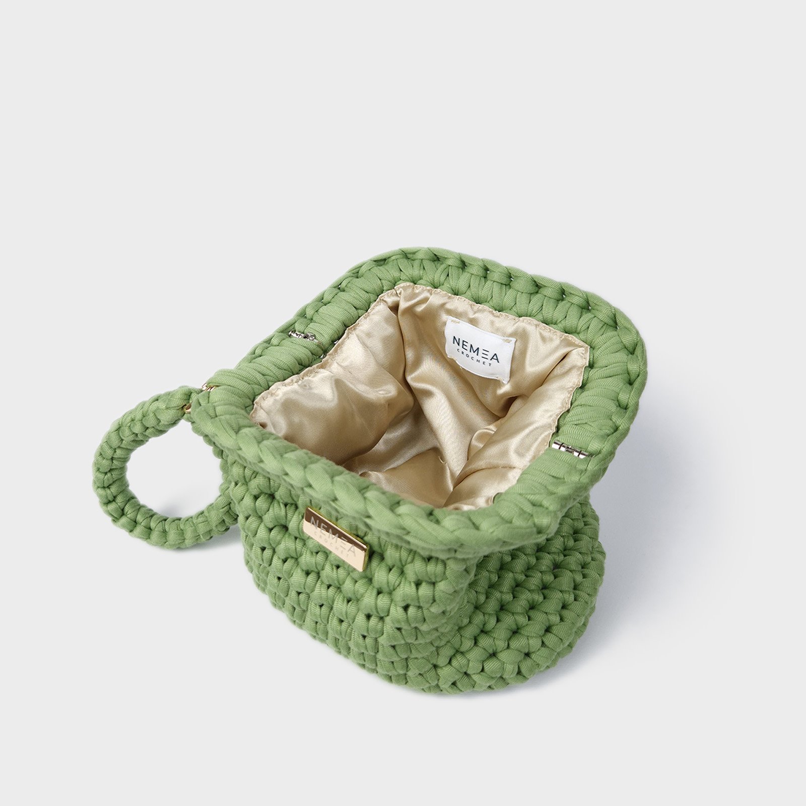 ESSENTIAL PISTACHIO is a mini crochet clutch designed for everyday use in a fresh pistachio green tone. This mini crochet clutch features a soft crochet texture with a lightweight yet structured feel.