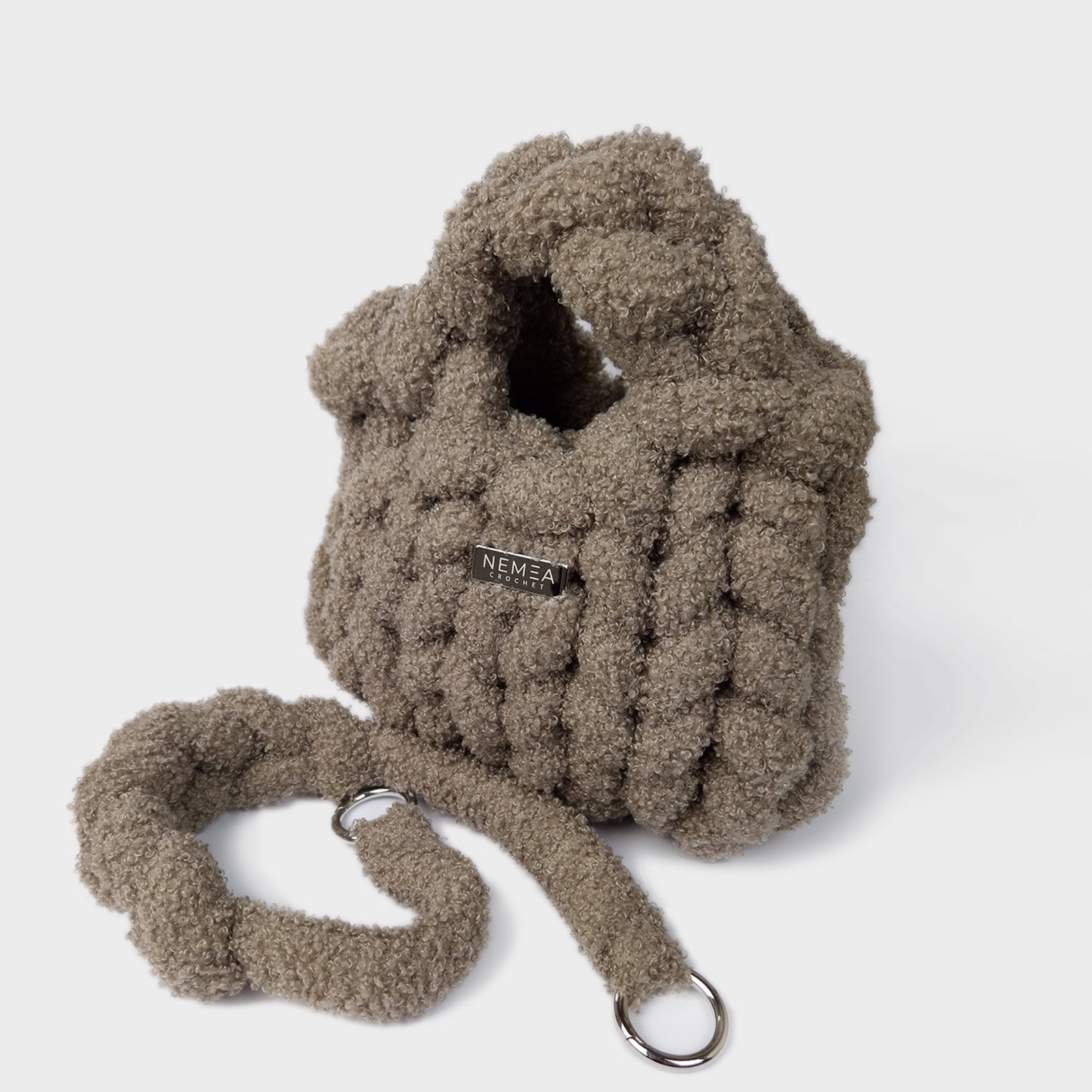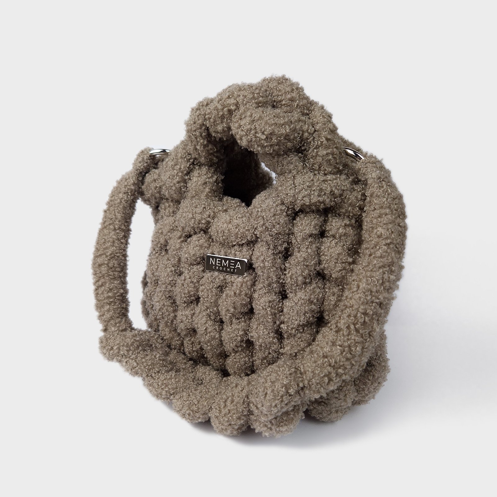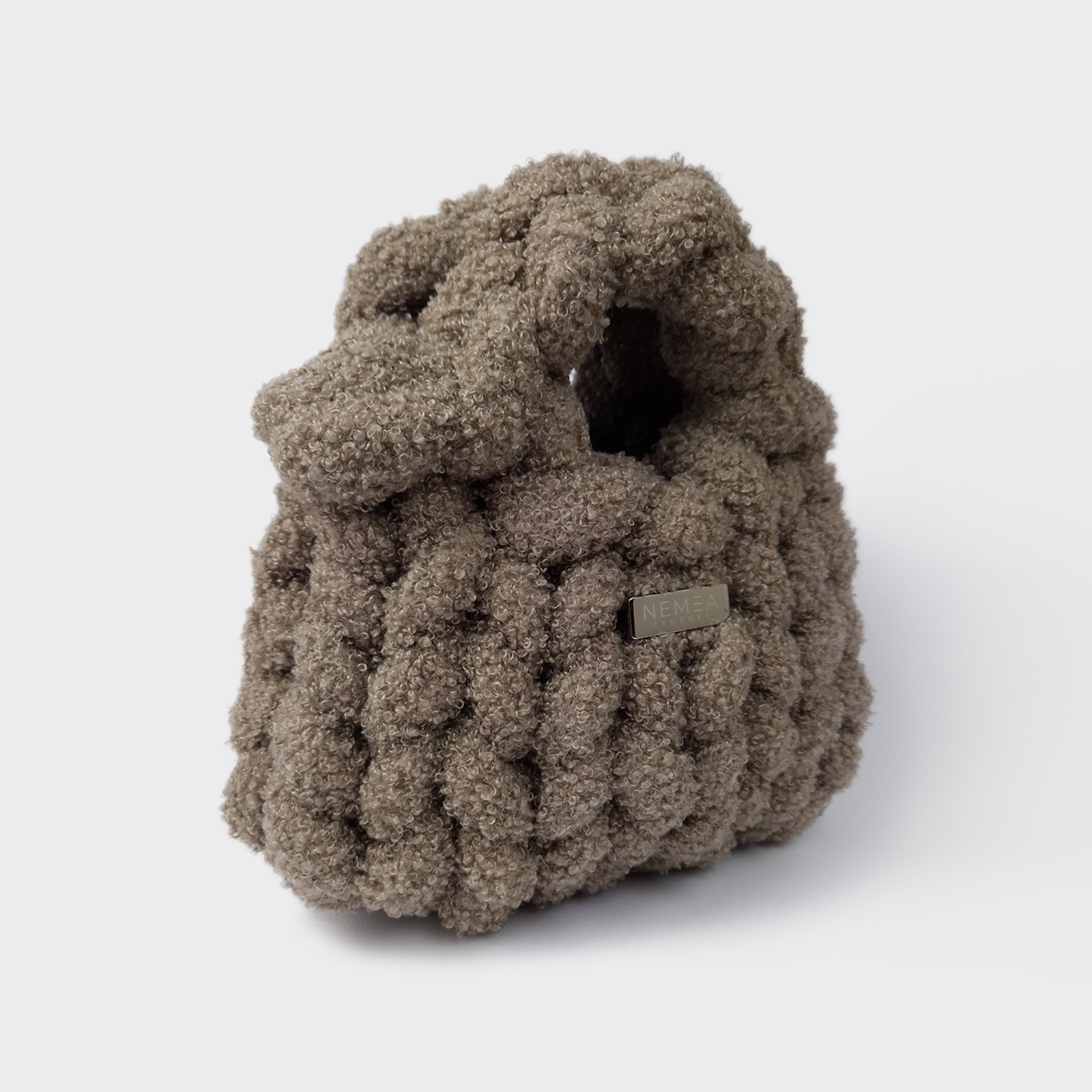 TEDDY ROAD is a finger-crochet chunky bag designed with a soft teddy-effect texture and a relaxed urban attitude. This finger-crochet chunky bag features a plush, tactile volume created using bouclé marshmallow yarn.